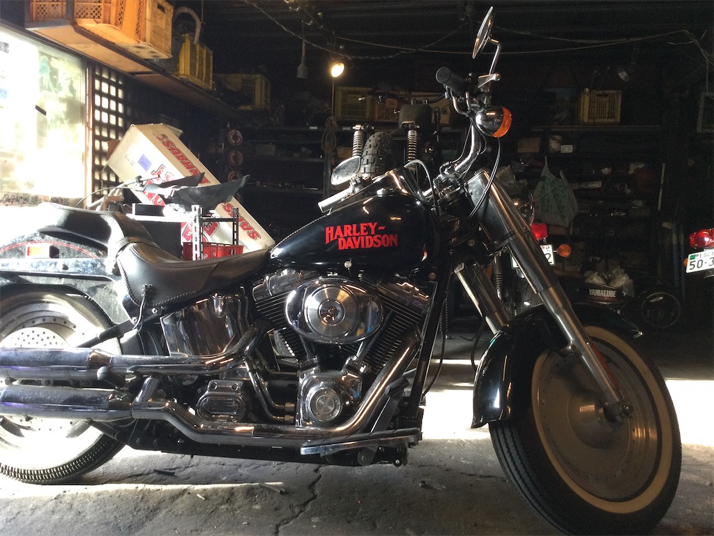 ハーレーの修理で タンクを内部コーティングとパテ埋め 塗装を終わらせ
